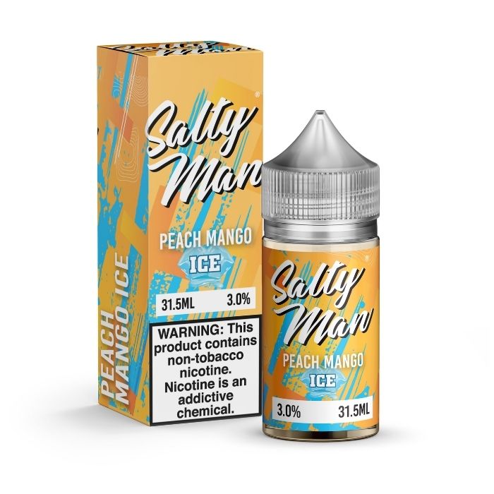 Check out Peach Mango Ice Synthetic Salts by Salty Man Vapor, featuring a delicious synthetic nicotine blend of frozen peaches and chilled mangoes